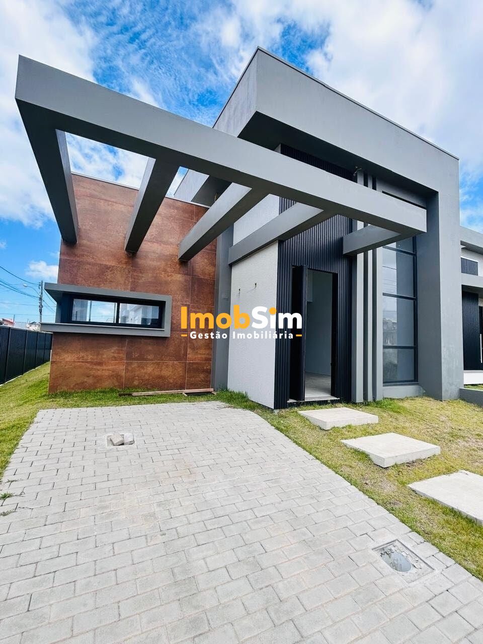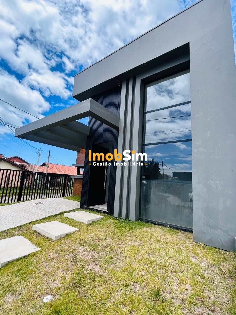 O imóvel está todo cercado em alumínio preto, elevando o visual contemporâneo e garantindo durabilidade.